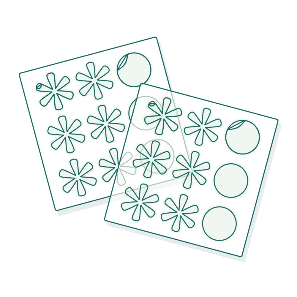 - Planche de stickers : C'est une feuille regroupant plusieurs stickers sur une seule surface. Vous pouvez y inclure différents designs, tailles ou formes, parfait pour les projets nécessitant plusieurs autocollants d’un coup.